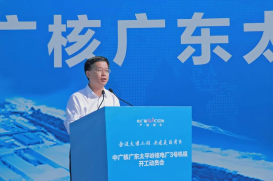 受劉吉書記委托,黎炳盛代表惠州市委、市政府和惠東縣委、縣政府,對太平嶺核電項目3號機組全面開工表示祝賀。他表示,太平嶺核電是惠州市打造“風光核氣儲”多能互補清潔能源產業集群的重要支撐,也是落實“碳達峰碳中和”國家戰略、推動清潔能源高質量發展的生力軍。惠州市將深入貫徹黨中央決策部署,認真落實省委、省政府“1310”具體部署,著力加快構建綠色低碳產業體系,秉承開放合作、互利共贏的發展理念,一如既往支持中廣核在惠各項事業的發展,持續為太平嶺核電項目建設保駕護航,推動“早開工、早投產、早見效”。希望惠州核電和各參建單位高質量推進項目建設,確保項目安全、優質、高效投產。希望中廣核繼續深耕惠州,共同為惠州市打造“粵港澳大灣區清潔能源中心”賦能添力。