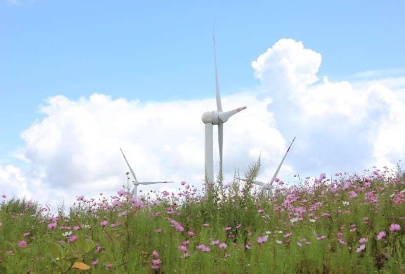 位于云南省西雙版納州勐海帕頂梁子風電場將節能、生態、環保的理念滲透建設全過程中,成為中國風電行業首個“綠色環保標桿風電場”。建設期,中廣核利用原有村組簡易路、森林防火通道,有效保護原有自然植被,做到風電發展與環境相融。同時,風電場區內廣泛種植適應當地生態條件的三角梅、櫻花、波斯菊等觀賞花,形成觀光區域,慕名而來的游人絡繹不絕,成為西雙版納州內乃至整個云南省居家郊游的勝地。