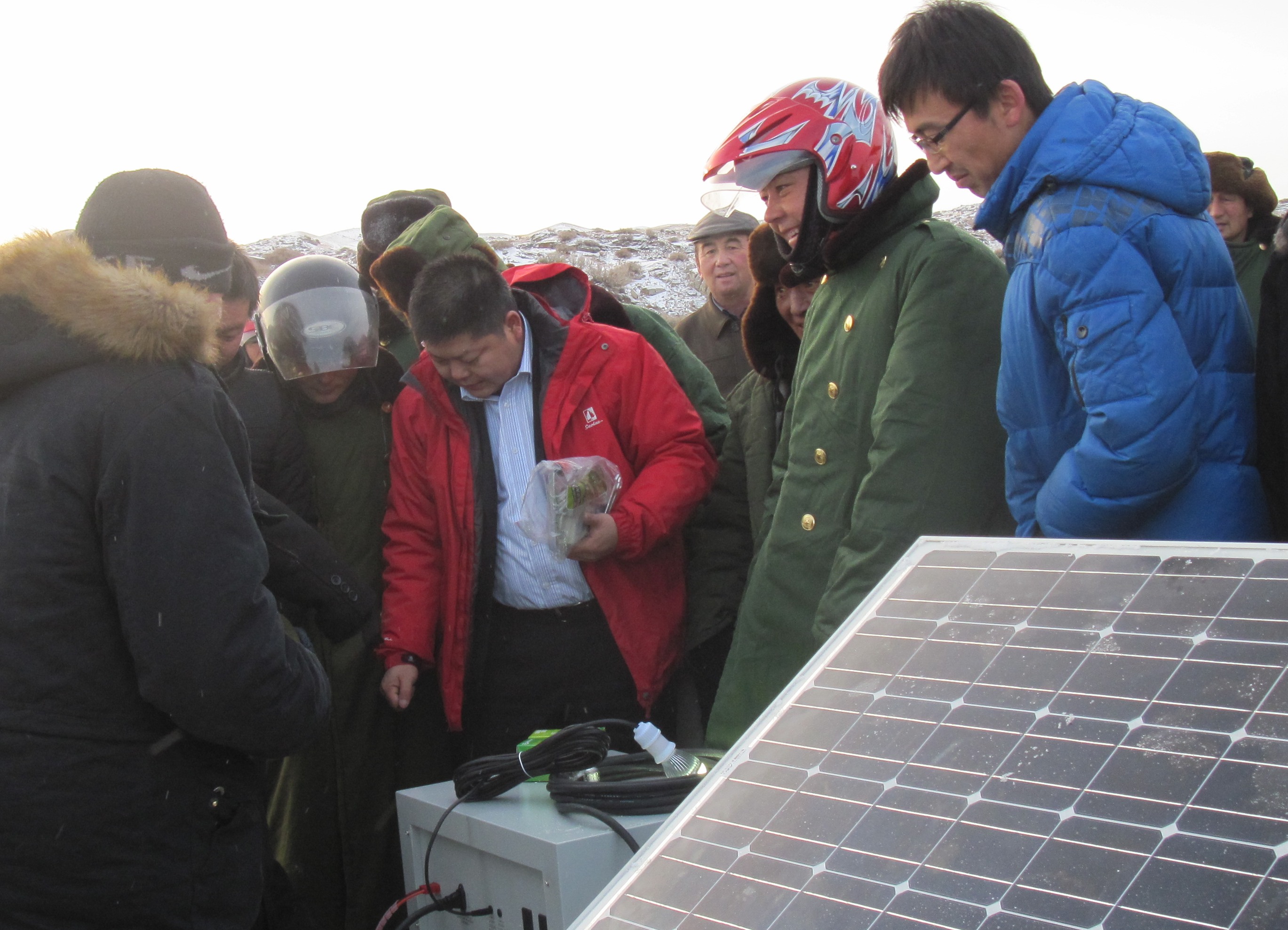 為解決新疆阿勒泰偏遠無電地區人口用電問題,中廣核太陽能新疆分公司承接了國家的光伏惠民工程。一年多的時間里,面對惡劣的山區環境,項目組成員足跡遍布阿勒泰地區各市縣,向西達哈薩克斯坦交界處,向東到蒙古國交界處,東西跨度 402 公里,南北跨度 464 公里,行程約62000 余公里,順利將發電設備發至牧民手中。該惠民項目解決了28 個無電鄉、120 個無電村、6197 戶的用電問題,為牧民送去了光明。