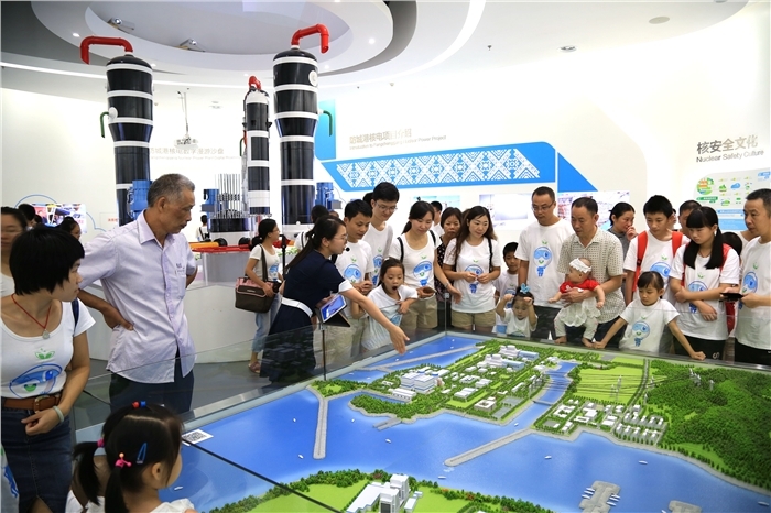 臺(tái)風(fēng)過后的核電現(xiàn)場顯得格外通透、明亮,陽光灑在每個(gè)參加活動(dòng)人的臉上。熱情的家屬和子女首先參觀了防城港核電公關(guān)中心,講解員為他們普及核電科普知識,通過豐富的圖文材料展現(xiàn)了防核建設(shè)發(fā)展的歷程。其中的數(shù)字沙盤頗受歡迎,家長紛紛帶著孩子上前,通過手動(dòng)操作進(jìn)入模擬核電站。
